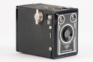 Diese Leidenschaft begann mit einer einfachen kleinen Box und dem Rollfilm im Format 6 x 9 cm. Um den Film einzulegen öffnete man auf der Rückseite der Kamera eine Klappe, legte den Rollfilm mit der Papierseite nach oben in den freien Schacht und führte ihn über die trichterförmige schwarze Öffnung und fädelte ihn auf der anderen Seite in die Trommel ein. Danach schloss man die Klappe und drehte an der Kurbel bis durch ein rotes kleines Kunststofffenster die Zahl eins erschien.